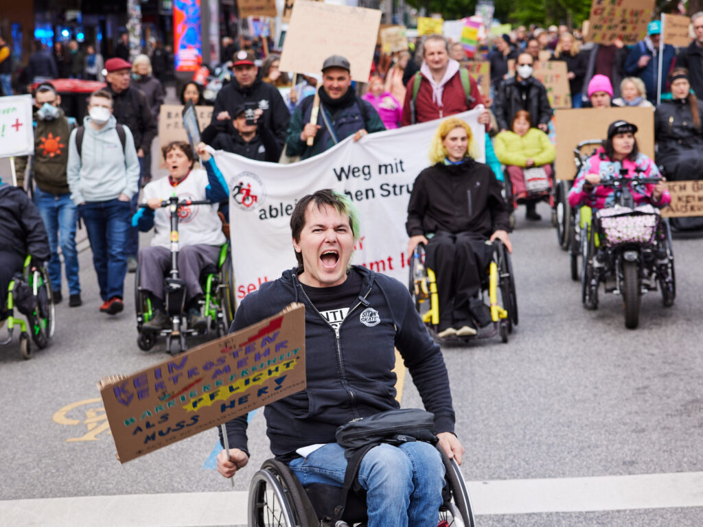 Der Europäische Protesttag am 5. Mai war auch 2025 wieder Bestandteil unserer Arbeit. In Hamburg haben wir erneut eine Demonstration organisiert, bei der ausschließlich Menschen mit Behinderung selbst zu Wort kamen. Themen waren unter anderem Barrierefreiheit, Ableismus, Audismus und Selbstbestimmung.