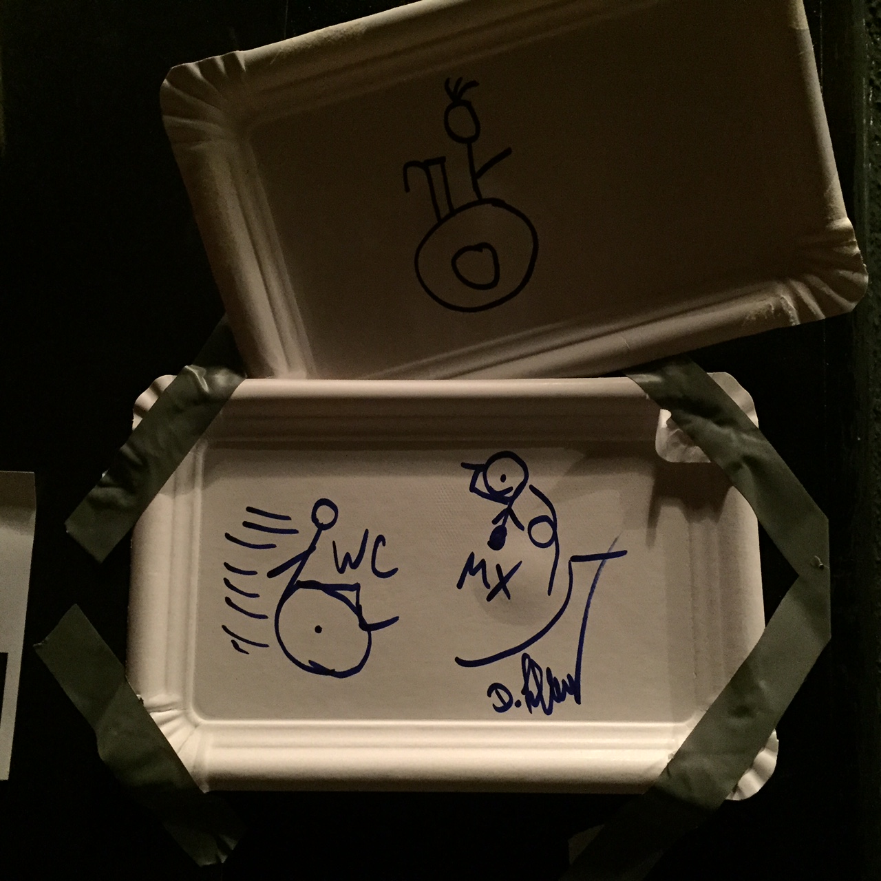Am nächsten Tag frühstückten wir, natürlich mit treppenspringen am Morgen. Dann wurden wir von unsren Gastbebern abgeholt und rollten die nächsten 500 m zur Bastion. Ein Gelände mit dem Roxy, der Reithalle, dem Schilli, einem, nein zwei Kinos. Echt super diese Popbastion. Zudem nette Leute, die alles in die Wege leiteten, sogar das Rollstuhlklo noch putzten, nachdem der Chef persönlich feststellen musste, dass es nicht leer geräumt wurde. Ich bin guter Hoffnung, dass bei meinem nächsten Besuch das Klo sofort benutzbar ist. Generell ist es ja sehr lobenswert, dass die Skatehalle über ein Rolsltuhlklo verfügt und der Klub Schilli neben an über noch eins. Die Voraussetzungen waren also super.